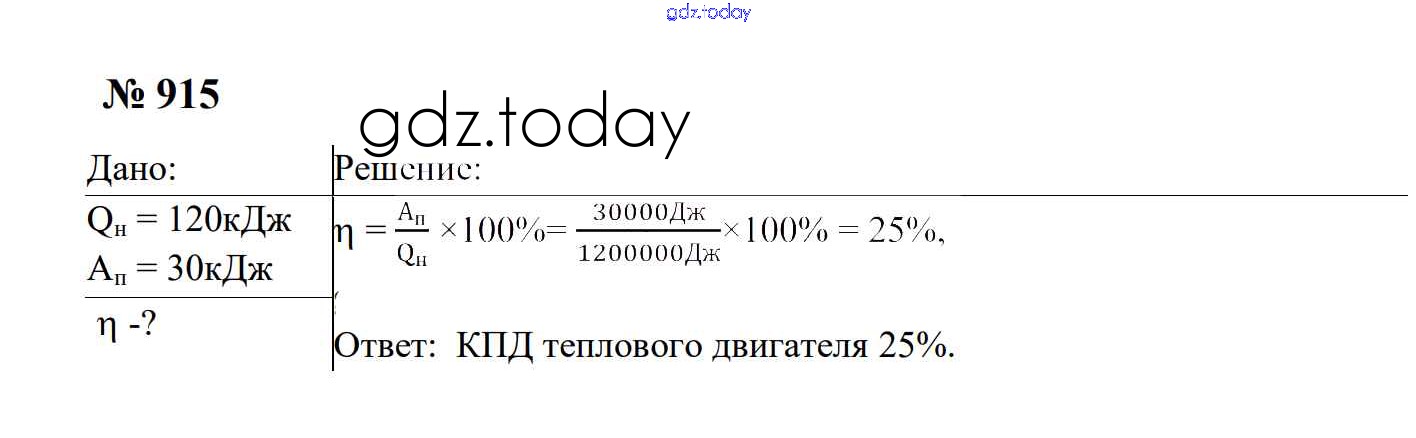 Ответы к Тепловые явления Решение. 8 класс 915 Сборнику задач по Физике для 7-9 класса Перышкин, Лонцова Экзамен УМК 2016