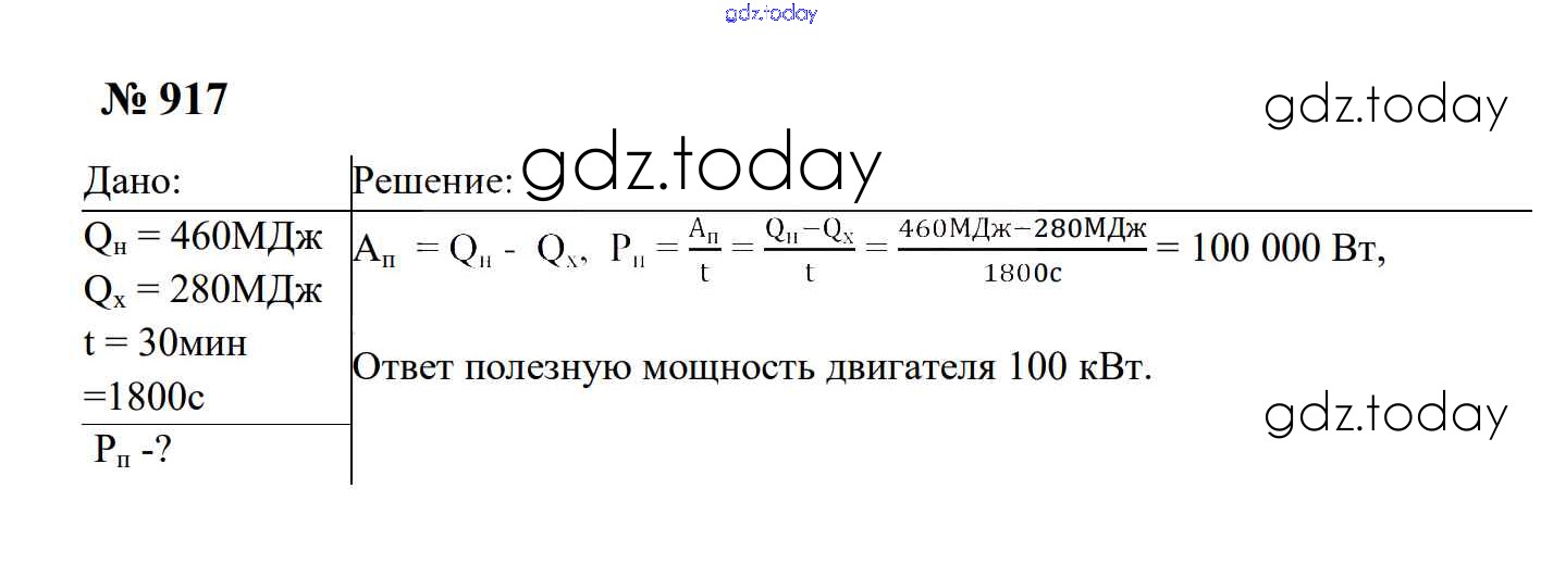 Ответы к Тепловые явления Решение. 8 класс 917 Сборнику задач по Физике для 7-9 класса Перышкин, Лонцова Экзамен УМК 2016