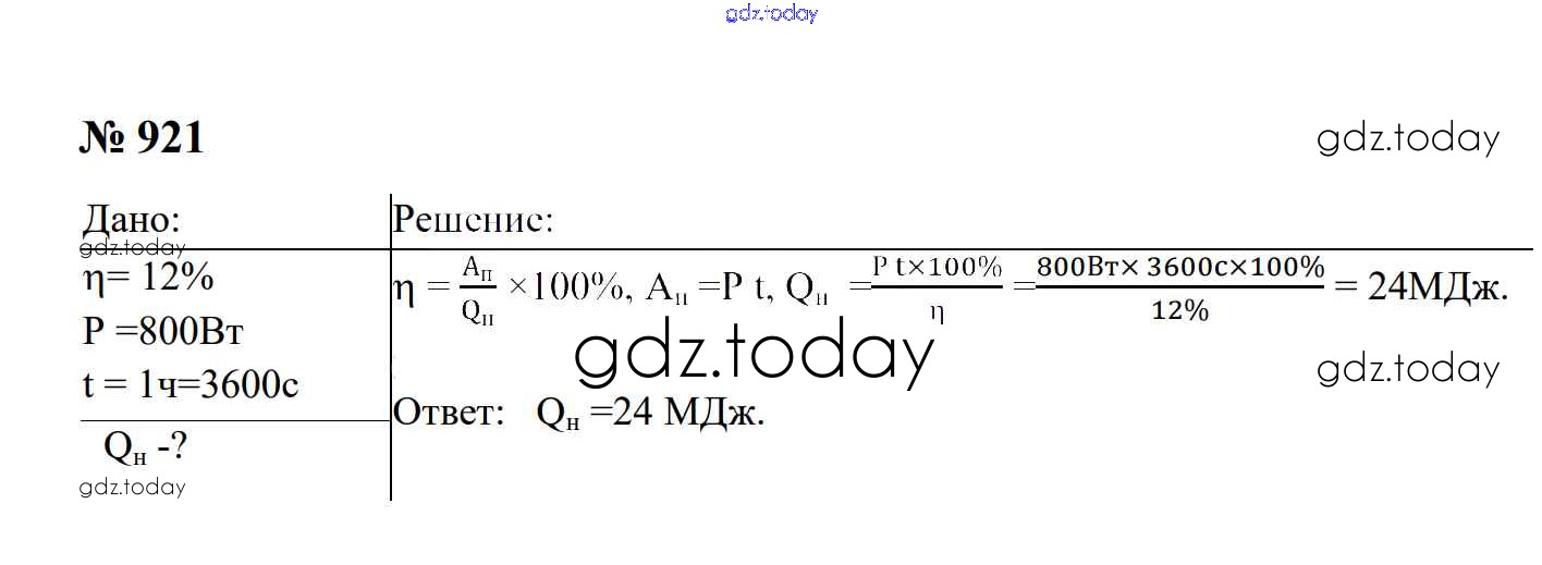 Ответы к Тепловые явления Решение. 8 класс 921 Сборнику задач по Физике для 7-9 класса Перышкин, Лонцова Экзамен УМК 2016