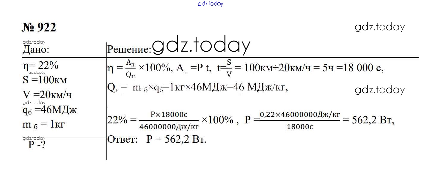 Ответы к Тепловые явления Решение. 8 класс 922 Сборнику задач по Физике для 7-9 класса Перышкин, Лонцова Экзамен УМК 2016
