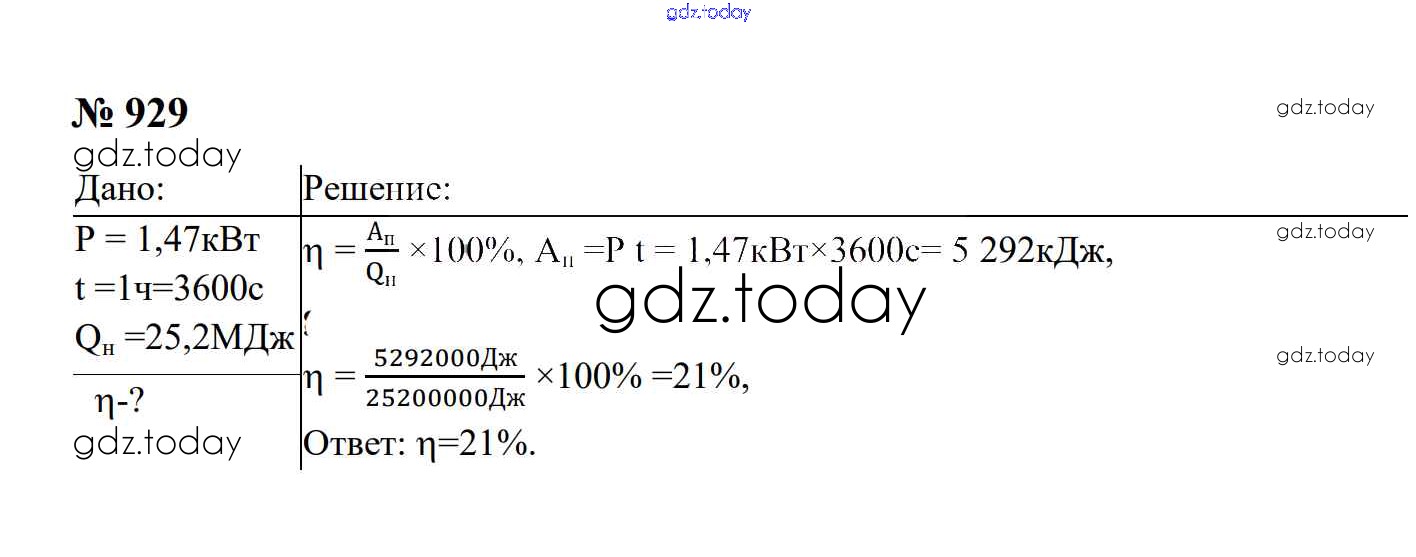 Ответы к Тепловые явления Решение. 8 класс 929 Сборнику задач по Физике для 7-9 класса Перышкин, Лонцова Экзамен УМК 2016