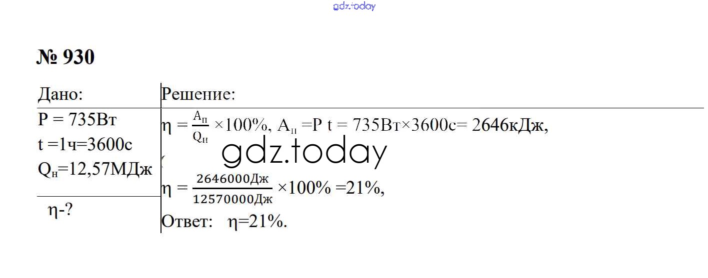 Ответы к Тепловые явления Решение. 8 класс 930 Сборнику задач по Физике для 7-9 класса Перышкин, Лонцова Экзамен УМК 2016