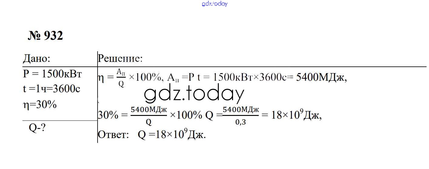 Ответы к Тепловые явления Решение. 8 класс 932 Сборнику задач по Физике для 7-9 класса Перышкин, Лонцова Экзамен УМК 2016