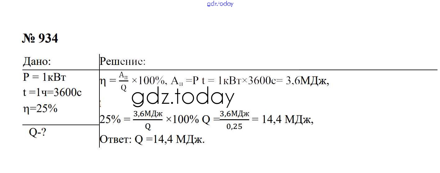 Ответы к Тепловые явления Решение. 8 класс 934 Сборнику задач по Физике для 7-9 класса Перышкин, Лонцова Экзамен УМК 2016