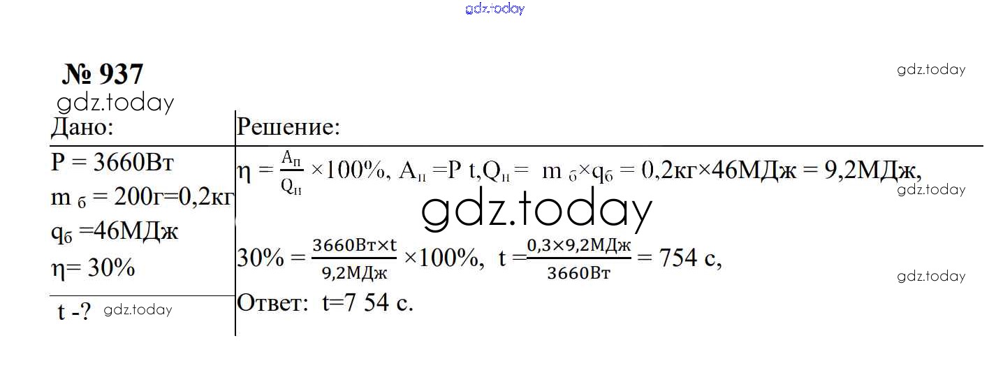 Ответы к Тепловые явления Решение. 8 класс 937 Сборнику задач по Физике для 7-9 класса Перышкин, Лонцова Экзамен УМК 2016