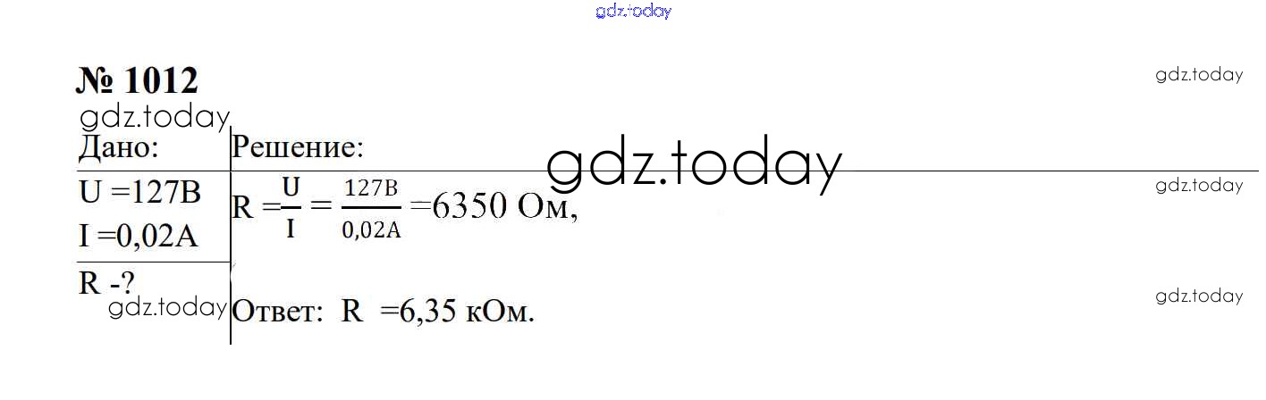 Ответы к Электрические явления Решение. 8 класс 1012 Сборнику задач по Физике для 7-9 класса Перышкин, Лонцова Экзамен УМК 2016