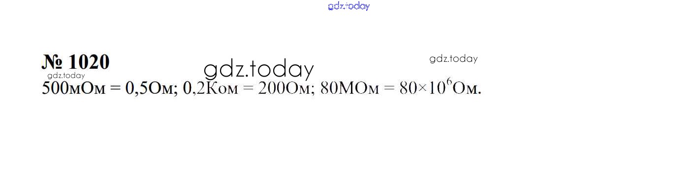 Ответы к Электрические явления Решение. 8 класс 1020 Сборнику задач по Физике для 7-9 класса Перышкин, Лонцова Экзамен УМК 2016