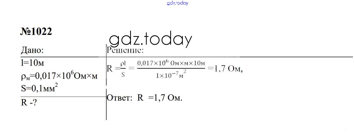 Ответы к Электрические явления Решение. 8 класс 1022 Сборнику задач по Физике для 7-9 класса Перышкин, Лонцова Экзамен УМК 2016