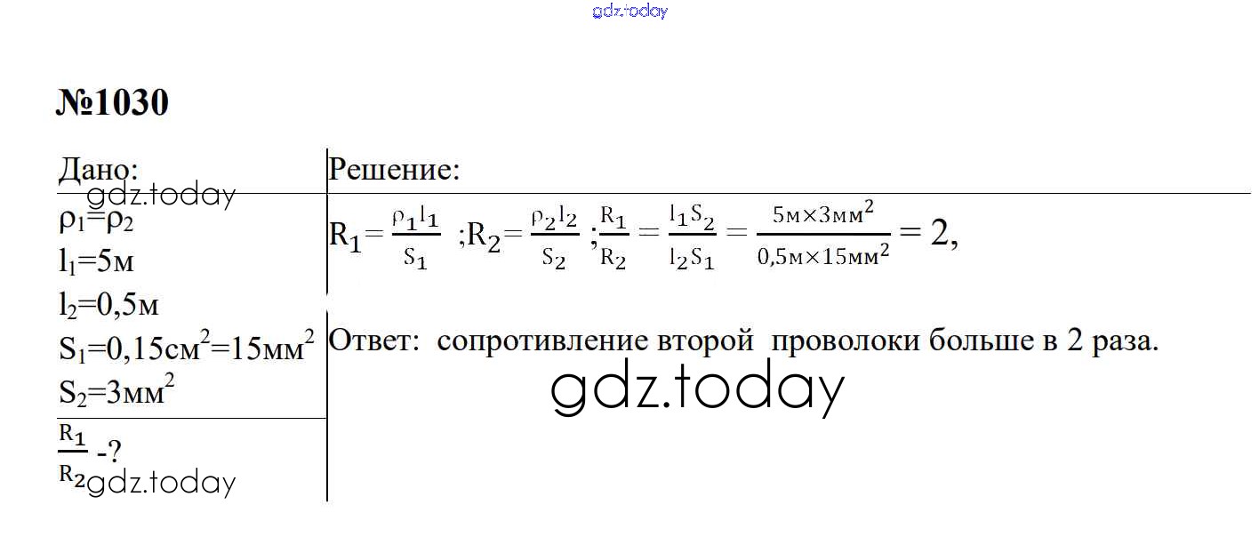 Ответы к Электрические явления Решение. 8 класс 1030 Сборнику задач по Физике для 7-9 класса Перышкин, Лонцова Экзамен УМК 2016