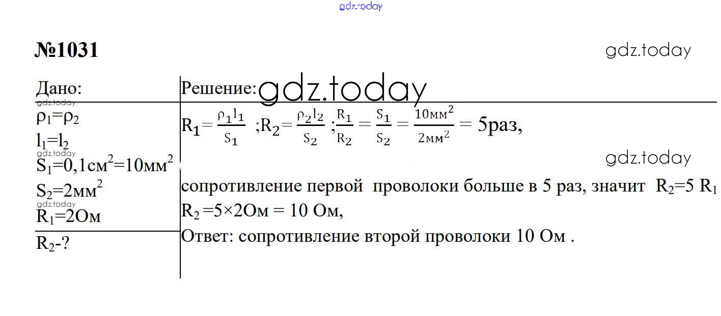 Ответы к Электрические явления Решение. 8 класс 1031 Сборнику задач по Физике для 7-9 класса Перышкин, Лонцова Экзамен УМК 2016