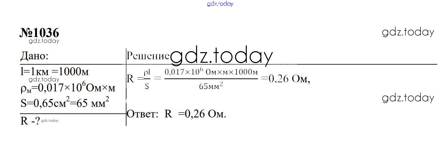 Ответы к Электрические явления Решение. 8 класс 1036 Сборнику задач по Физике для 7-9 класса Перышкин, Лонцова Экзамен УМК 2016
