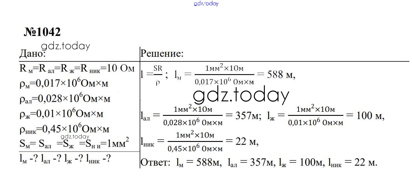 Ответы к Электрические явления Решение. 8 класс 1042 Сборнику задач по Физике для 7-9 класса Перышкин, Лонцова Экзамен УМК 2016