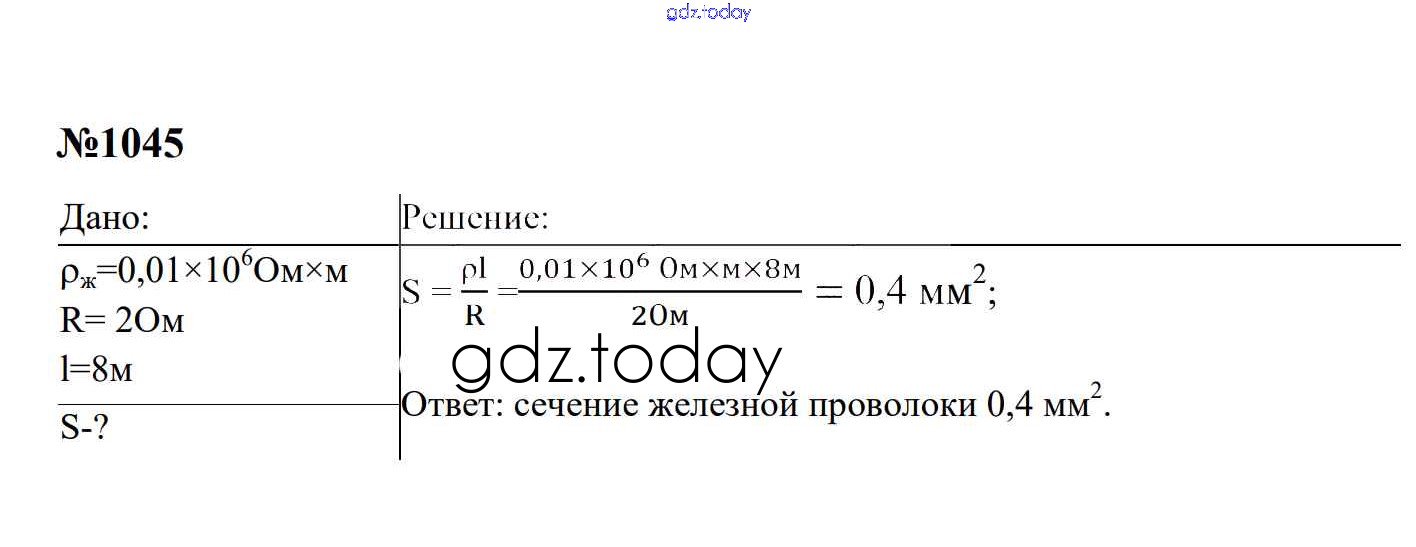 Ответы к Электрические явления Решение. 8 класс 1045 Сборнику задач по Физике для 7-9 класса Перышкин, Лонцова Экзамен УМК 2016