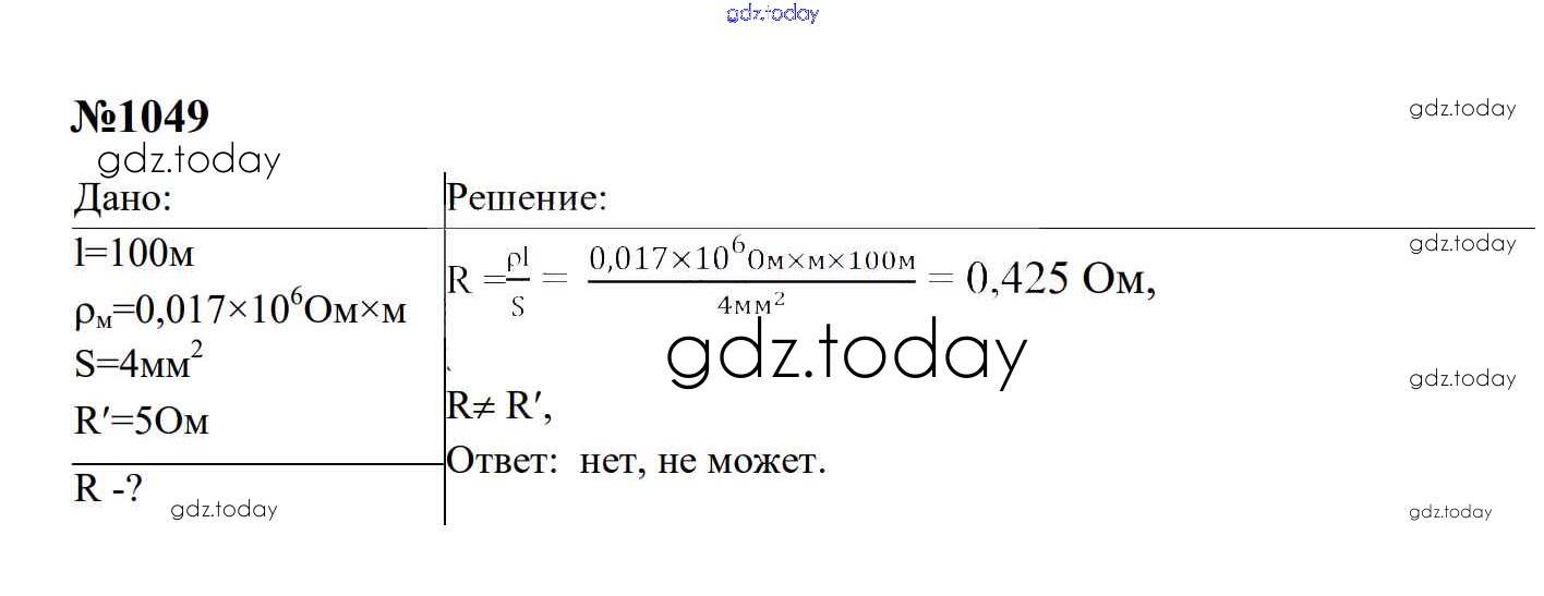 Ответы к Электрические явления Решение. 8 класс 1049 Сборнику задач по Физике для 7-9 класса Перышкин, Лонцова Экзамен УМК 2016