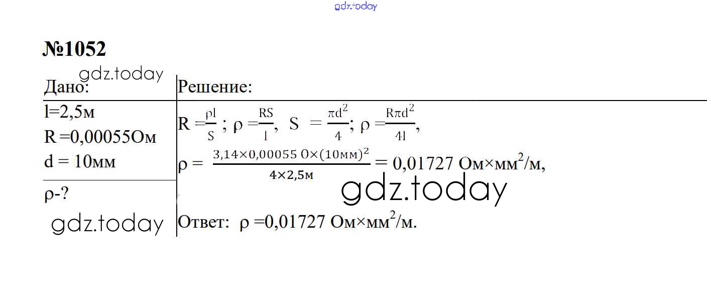 Ответы к Электрические явления Решение. 8 класс 1052 Сборнику задач по Физике для 7-9 класса Перышкин, Лонцова Экзамен УМК 2016