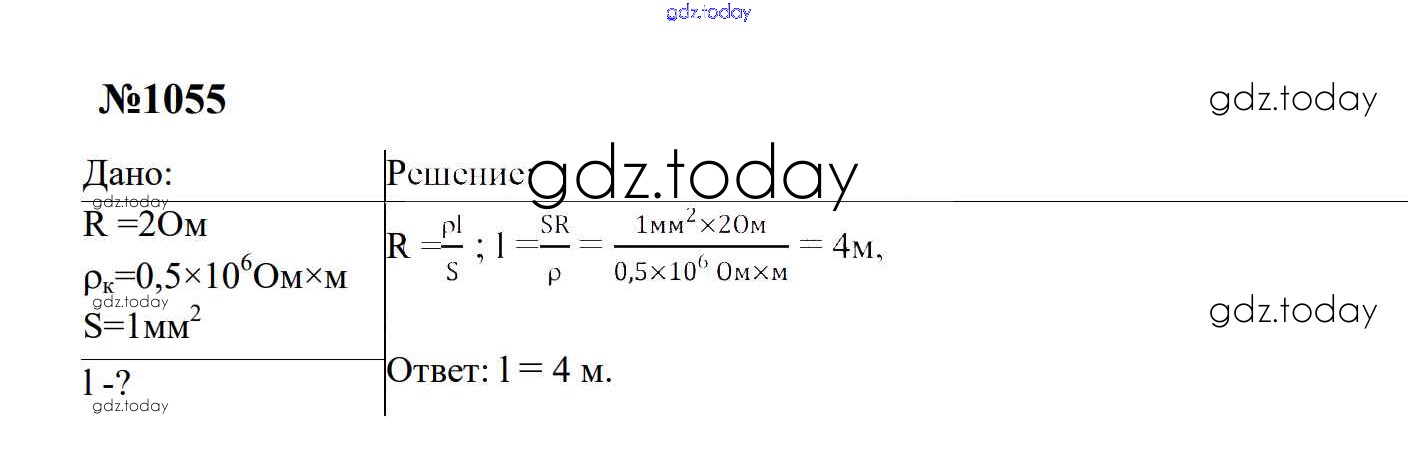 Ответы к Электрические явления Решение. 8 класс 1055 Сборнику задач по Физике для 7-9 класса Перышкин, Лонцова Экзамен УМК 2016