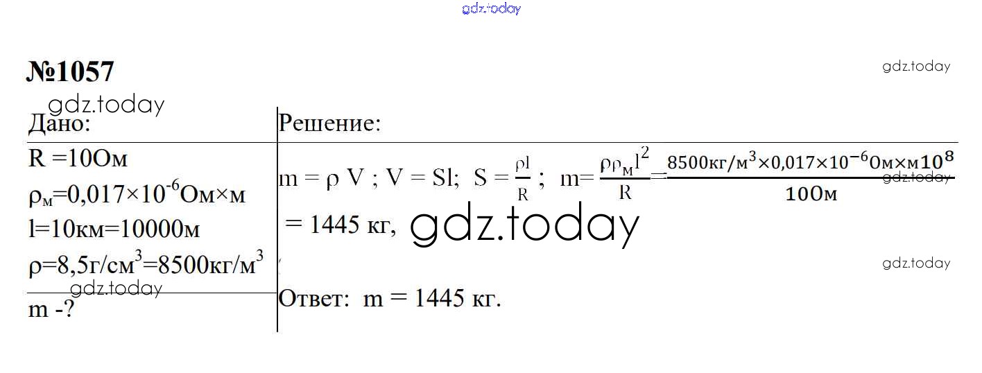 Ответы к Электрические явления Решение. 8 класс 1057 Сборнику задач по Физике для 7-9 класса Перышкин, Лонцова Экзамен УМК 2016