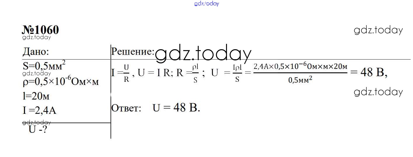 Ответы к Электрические явления Решение. 8 класс 1060 Сборнику задач по Физике для 7-9 класса Перышкин, Лонцова Экзамен УМК 2016