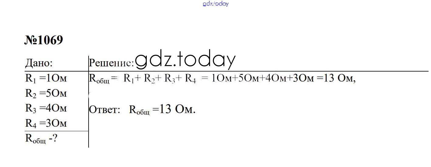 Ответы к Электрические явления Решение. 8 класс 1069 Сборнику задач по Физике для 7-9 класса Перышкин, Лонцова Экзамен УМК 2016