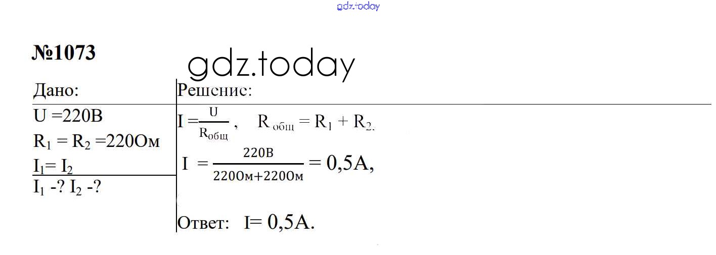 Ответы к Электрические явления Решение. 8 класс 1073 Сборнику задач по Физике для 7-9 класса Перышкин, Лонцова Экзамен УМК 2016
