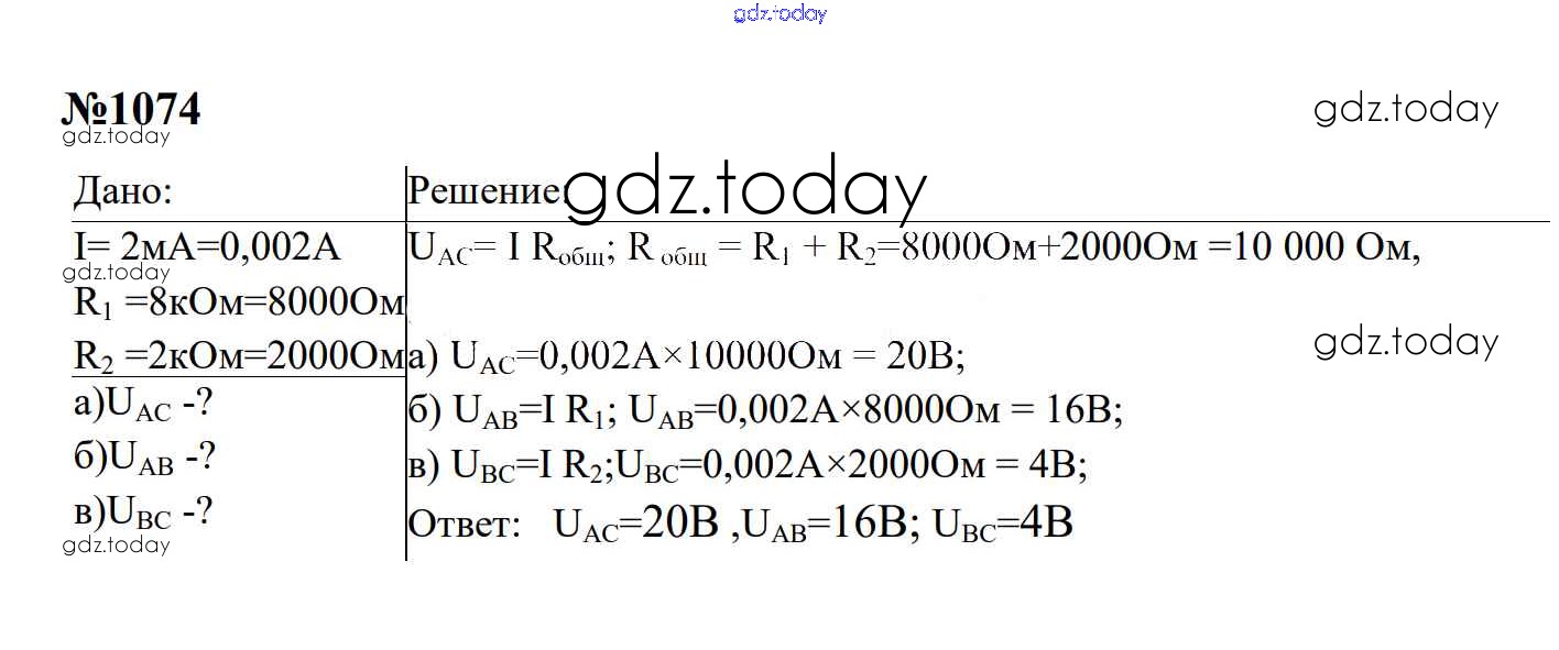 Ответы к Электрические явления Решение. 8 класс 1074 Сборнику задач по Физике для 7-9 класса Перышкин, Лонцова Экзамен УМК 2016