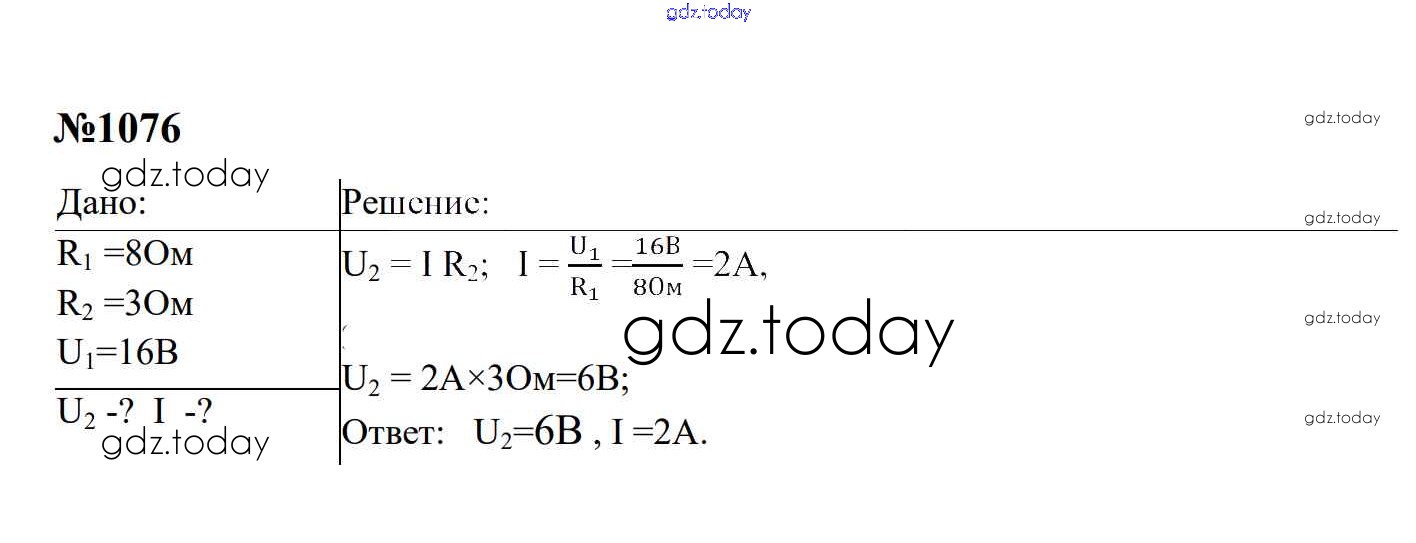 Ответы к Электрические явления Решение. 8 класс 1076 Сборнику задач по Физике для 7-9 класса Перышкин, Лонцова Экзамен УМК 2016