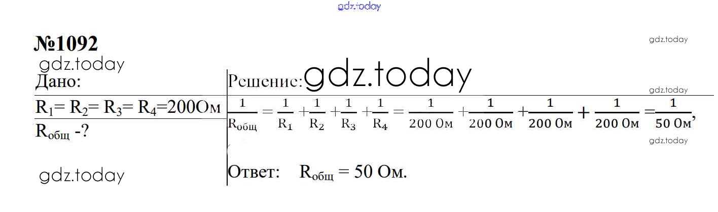 Ответы к Электрические явления Решение. 8 класс 1092 Сборнику задач по Физике для 7-9 класса Перышкин, Лонцова Экзамен УМК 2016