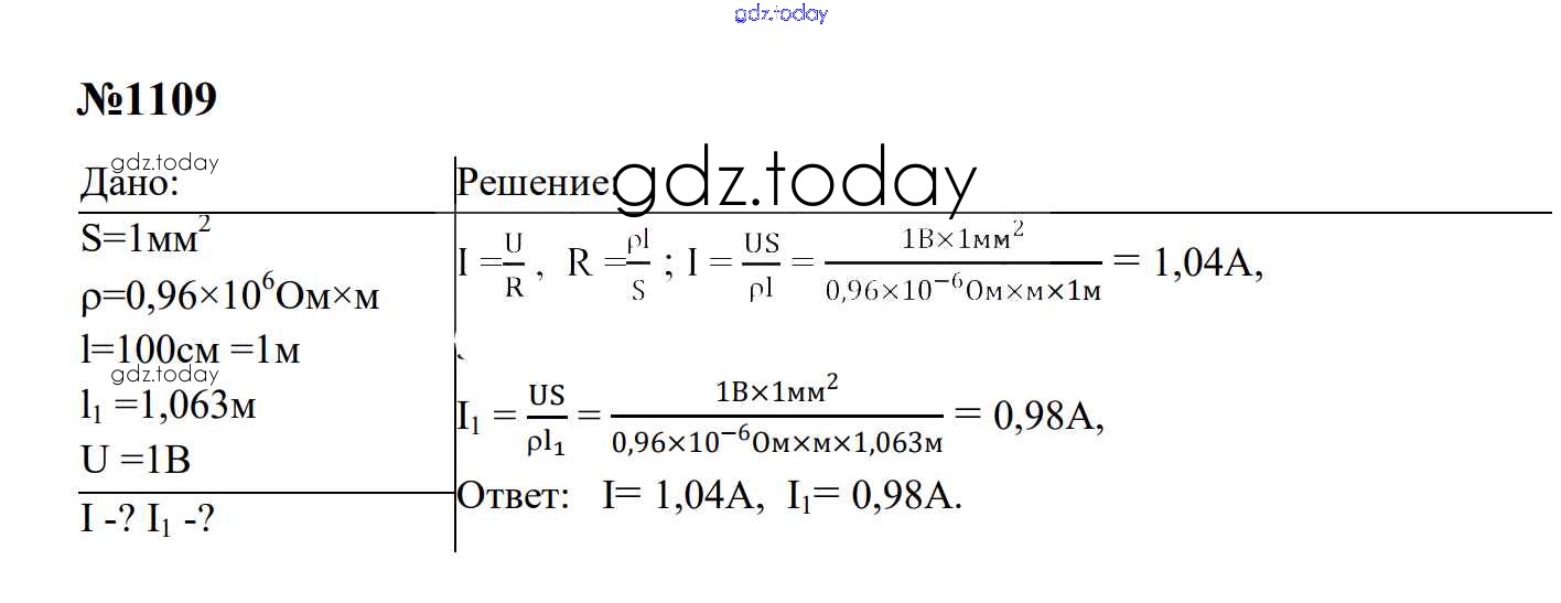 Ответы к Электрические явления Решение. 8 класс 1109 Сборнику задач по Физике для 7-9 класса Перышкин, Лонцова Экзамен УМК 2016