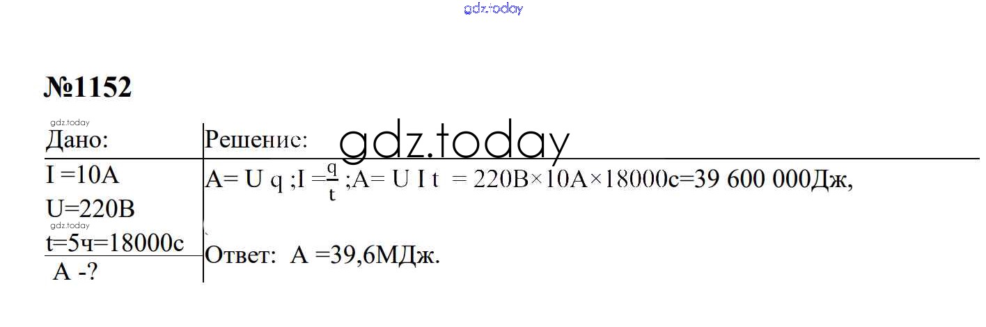 Ответы к Электрические явления Решение. 8 класс 1152 Сборнику задач по Физике для 7-9 класса Перышкин, Лонцова Экзамен УМК 2016