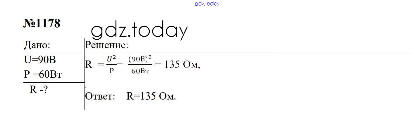 Ответы к Электрические явления Решение. 8 класс 1178 Сборнику задач по Физике для 7-9 класса Перышкин, Лонцова Экзамен УМК 2016