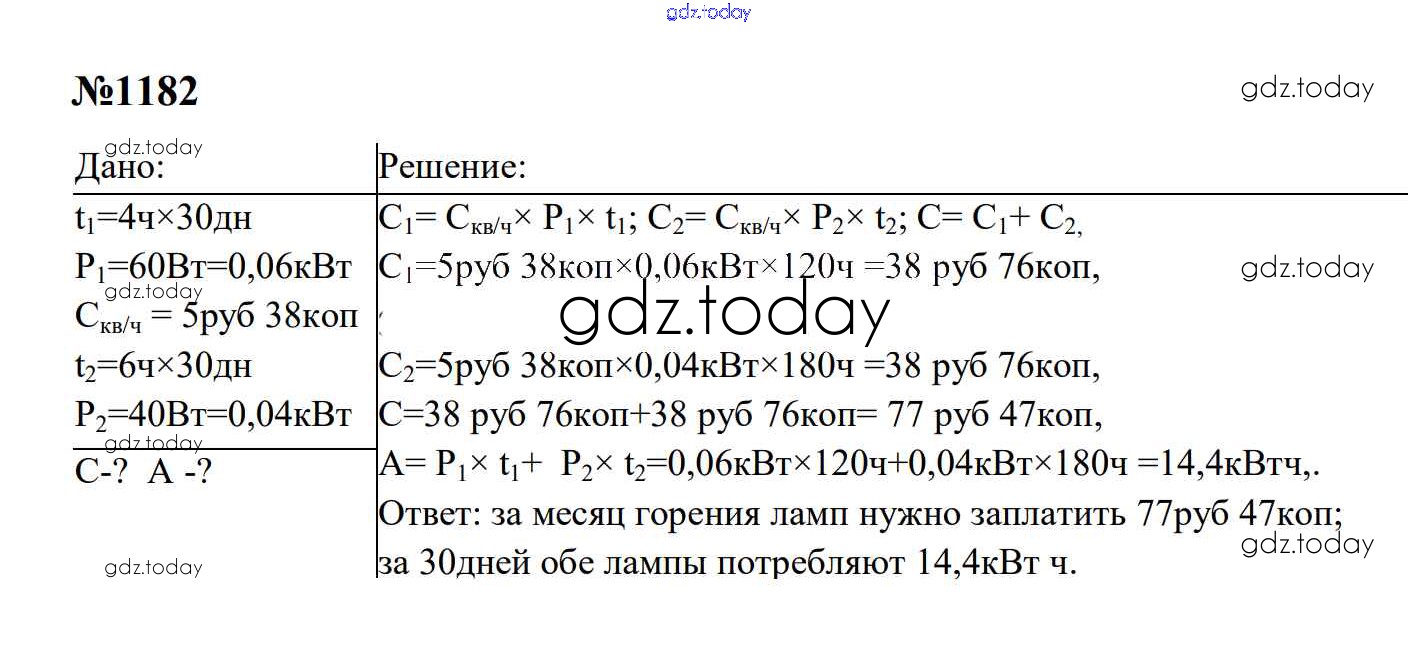 Ответы к Электрические явления Решение. 8 класс 1182 Сборнику задач по Физике для 7-9 класса Перышкин, Лонцова Экзамен УМК 2016