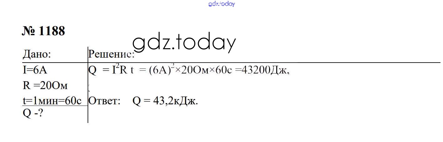 Ответы к Электрические явления Решение. 8 класс 1188 Сборнику задач по Физике для 7-9 класса Перышкин, Лонцова Экзамен УМК 2016