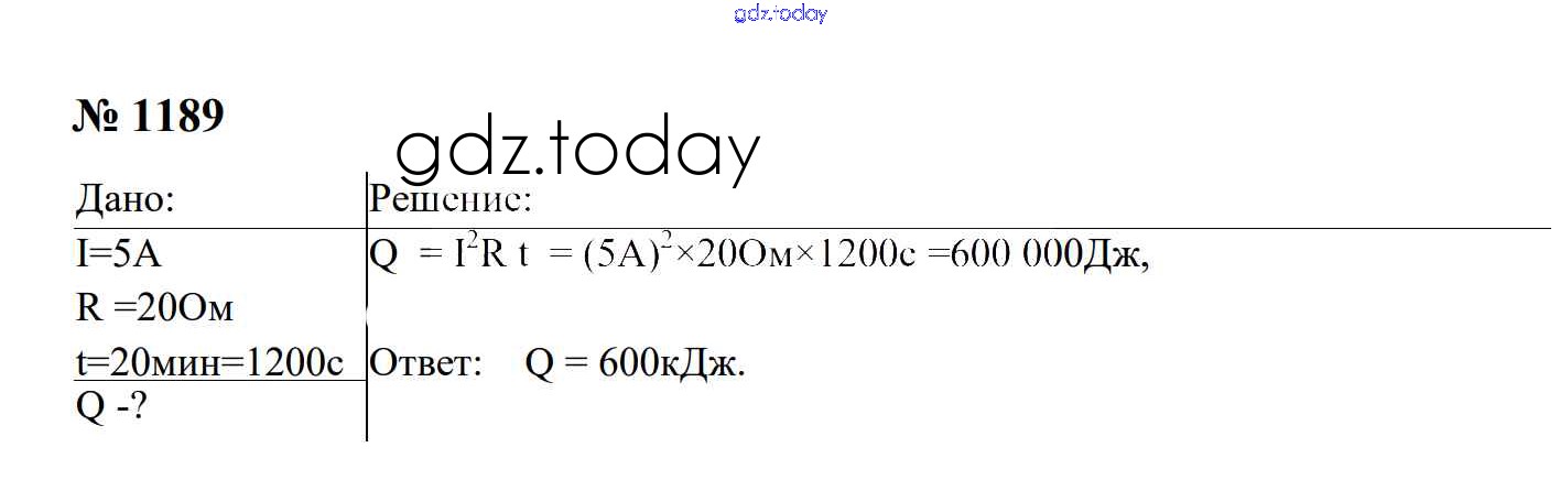 Ответы к Электрические явления Решение. 8 класс 1189 Сборнику задач по Физике для 7-9 класса Перышкин, Лонцова Экзамен УМК 2016