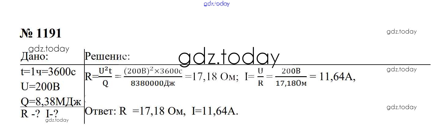 Ответы к Электрические явления Решение. 8 класс 1191 Сборнику задач по Физике для 7-9 класса Перышкин, Лонцова Экзамен УМК 2016