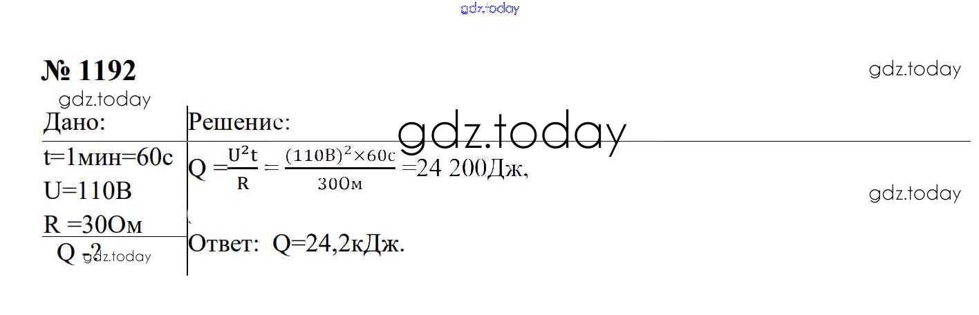 Ответы к Электрические явления Решение. 8 класс 1192 Сборнику задач по Физике для 7-9 класса Перышкин, Лонцова Экзамен УМК 2016