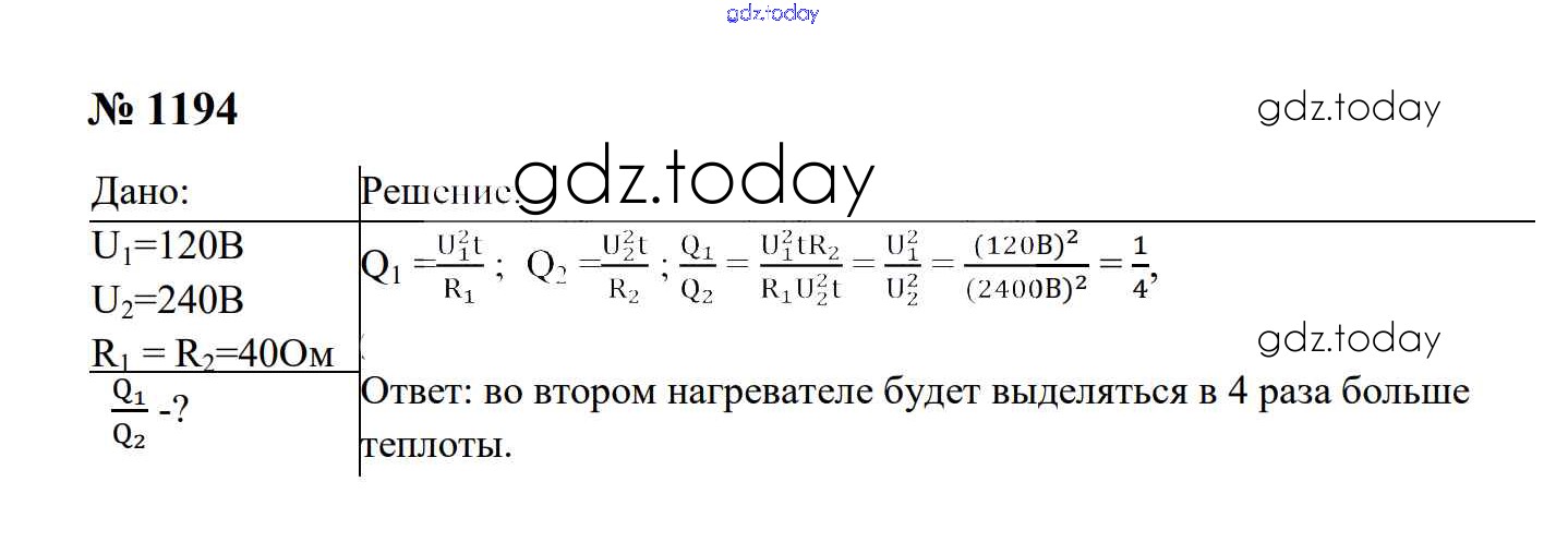 Ответы к Электрические явления Решение. 8 класс 1194 Сборнику задач по Физике для 7-9 класса Перышкин, Лонцова Экзамен УМК 2016
