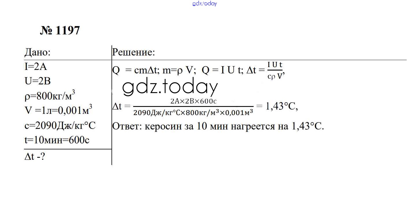 Ответы к Электрические явления Решение. 8 класс 1197 Сборнику задач по Физике для 7-9 класса Перышкин, Лонцова Экзамен УМК 2016