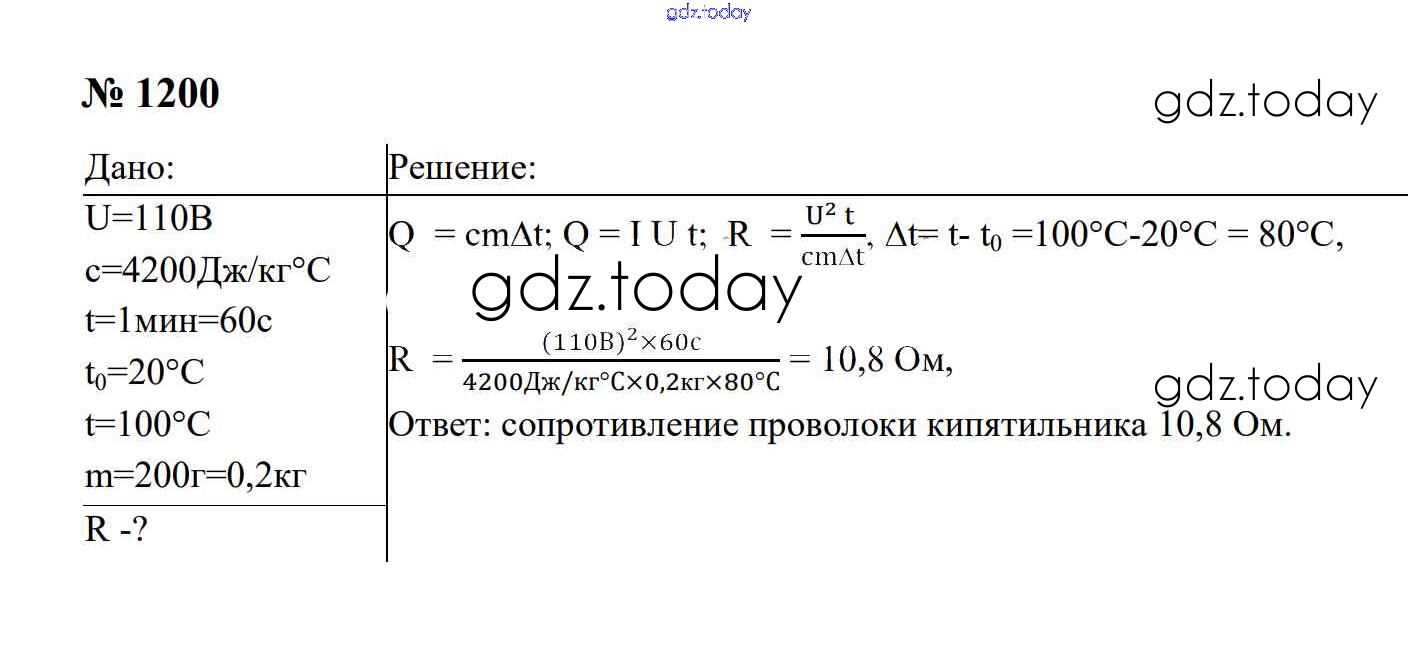 Ответы к Электрические явления Решение. 8 класс 1200 Сборнику задач по Физике для 7-9 класса Перышкин, Лонцова Экзамен УМК 2016
