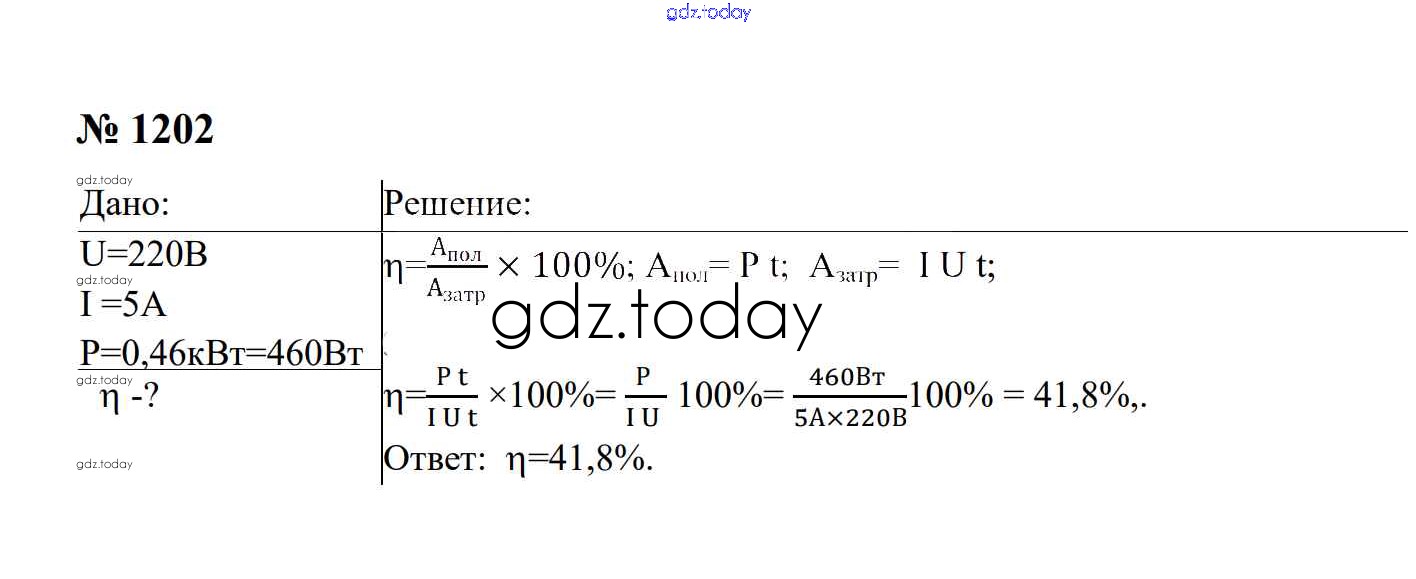 Ответы к Электрические явления Решение. 8 класс 1202 Сборнику задач по Физике для 7-9 класса Перышкин, Лонцова Экзамен УМК 2016