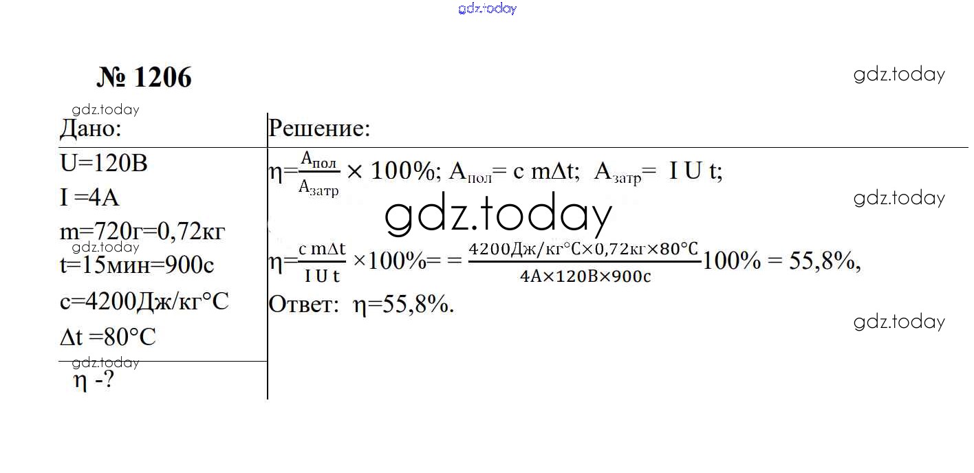 Ответы к Электрические явления Решение. 8 класс 1206 Сборнику задач по Физике для 7-9 класса Перышкин, Лонцова Экзамен УМК 2016
