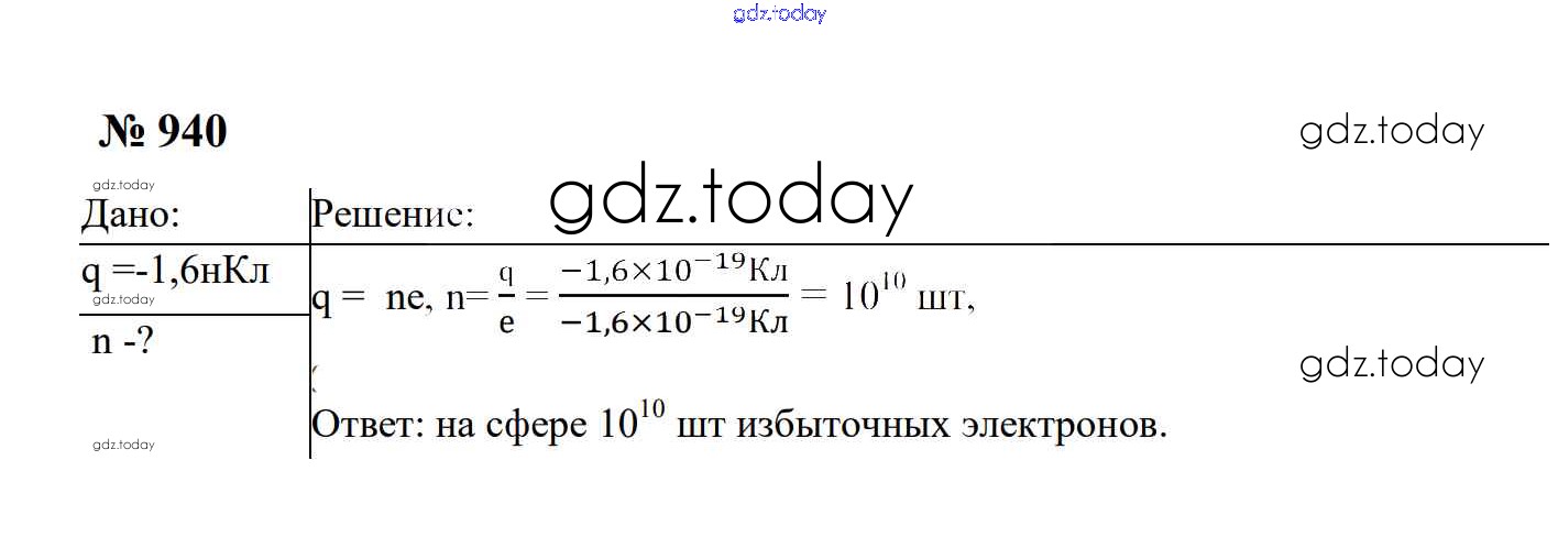 Ответы к Электрические явления Решение. 8 класс 940 Сборнику задач по Физике для 7-9 класса Перышкин, Лонцова Экзамен УМК 2016