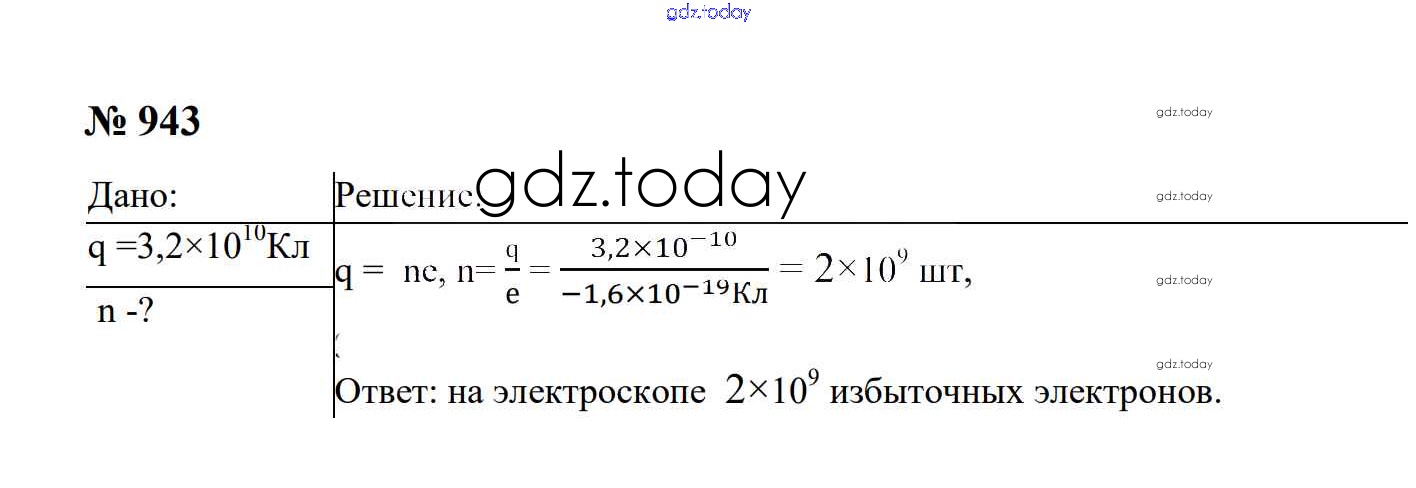 Ответы к Электрические явления Решение. 8 класс 943 Сборнику задач по Физике для 7-9 класса Перышкин, Лонцова Экзамен УМК 2016