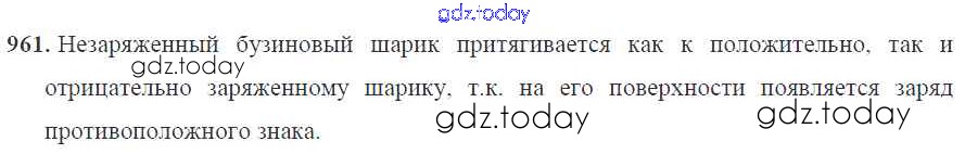Ответы к Электрические явления Решение 8 класс 961 Сборнику задач по Физике для 7-9 класса Перышкин, Лонцова Экзамен УМК 2016