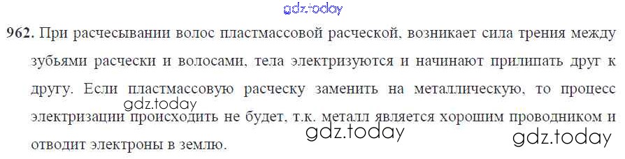 Ответы к Электрические явления Решение 8 класс 962 Сборнику задач по Физике для 7-9 класса Перышкин, Лонцова Экзамен УМК 2016