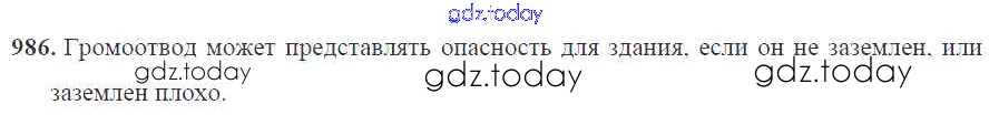 Ответы к Электрические явления Решение 8 класс 986 Сборнику задач по Физике для 7-9 класса Перышкин, Лонцова Экзамен УМК 2016
