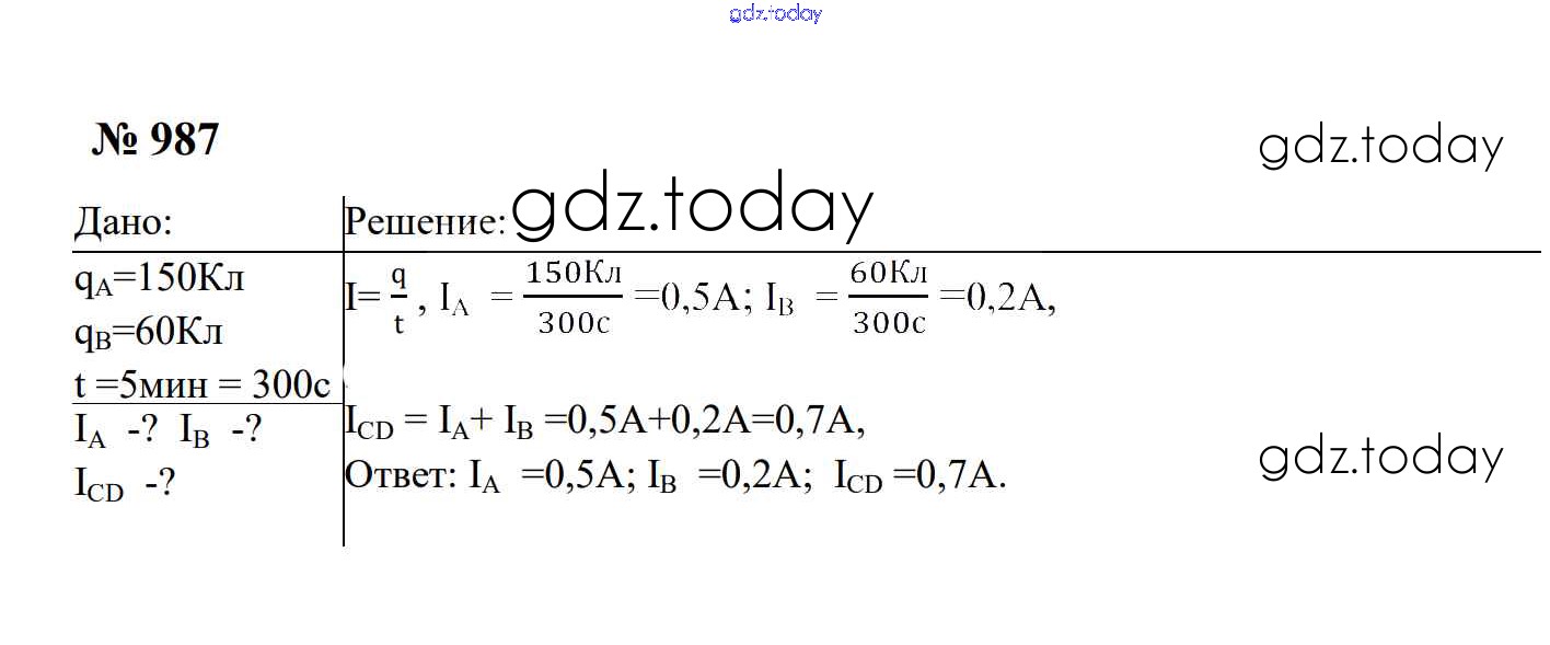 Ответы к Электрические явления Решение. 8 класс 987 Сборнику задач по Физике для 7-9 класса Перышкин, Лонцова Экзамен УМК 2016