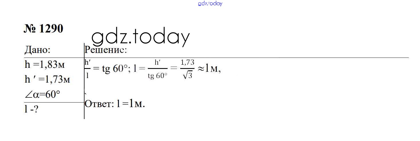 Ответы к Световые явления Решение. 8 класс 1290 Сборнику задач по Физике для 7-9 класса Перышкин, Лонцова Экзамен УМК 2016