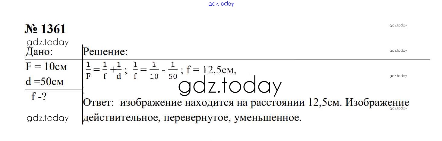 Ответы к Световые явления Решение. 8 класс 1361 Сборнику задач по Физике для 7-9 класса Перышкин, Лонцова Экзамен УМК 2016