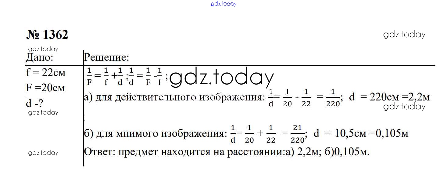 Ответы к Световые явления Решение. 8 класс 1362 Сборнику задач по Физике для 7-9 класса Перышкин, Лонцова Экзамен УМК 2016