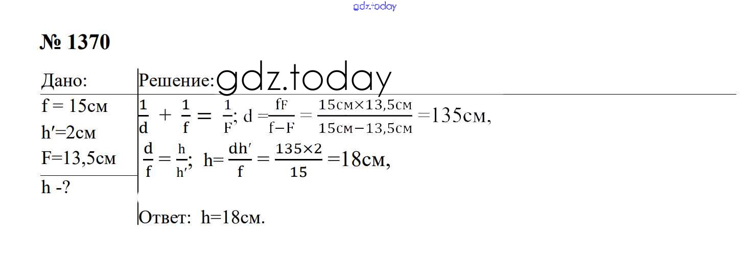 Ответы к Световые явления Решение. 8 класс 1370 Сборнику задач по Физике для 7-9 класса Перышкин, Лонцова Экзамен УМК 2016